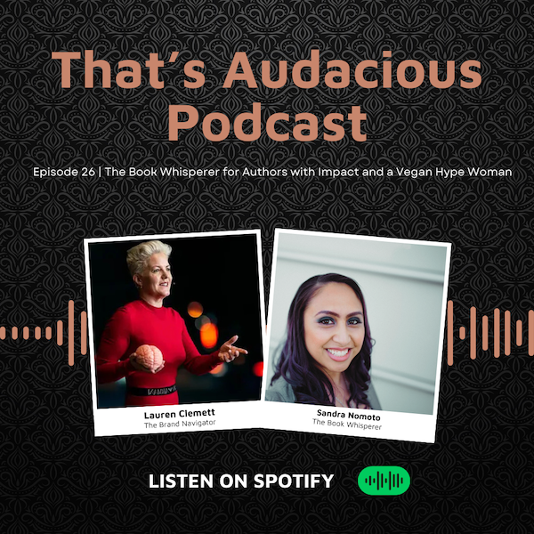 In this episode of That's Audacious, host Lauren Clemett is joined by Sandra Nomoto, the Book Whisperer for authors with impact and a vegan hype woman. Sandra shares her inspiring journey of combining her passion for veganism and writing to build a successful business.